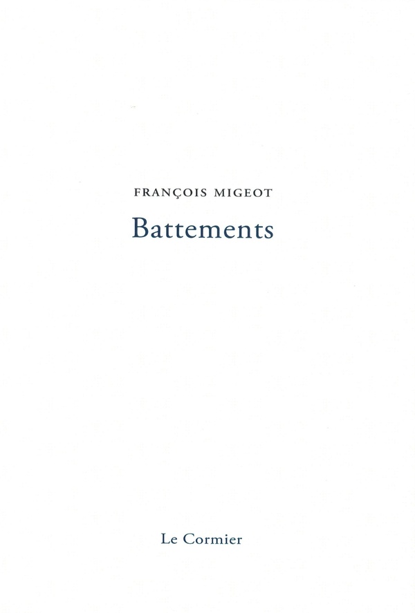 Ces Battements sont un concentré d’émotions tenues par la justesse des mots, celle de leurs associations, et par les rythmes qui scandent cette parole afin de tenir au plus près les images qu’elle éveille de sorte qu’elle maintient sous tension son lecteur. Si la poésie cherche à atteindre une justesse au plus profond de son expression, sans se surcharger de métaphores, François Migeot y parvient comme jamais en ce livre où la création dispose avec force sa singularité, à la fois dans la manière de saisir le rapport à soi, au monde, tout comme la relation à l’autre, avec cette exigence où l’intériorité se révèle sur un mode d’expression discret afin de traduire au plus juste toute avancée dans l’existence de tous les jours ayant en vue l’horizon des possibles. Ces quelques vers donnent un avant-goût de la qualité de cette écriture poétique : « On écoute / la rumeur des trottoirs / l’attente qui les tire / la coulée de chaussée / la question qu’elle étire / la bouche des caves / où la ville soupire. »