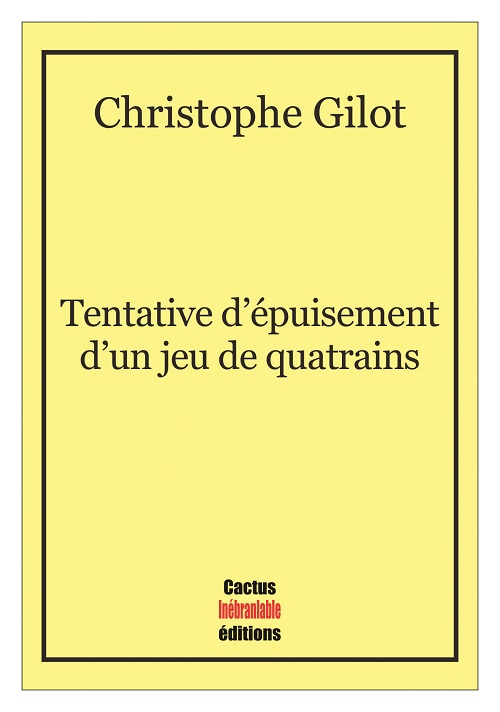 Ce deuxième recueil de quatrains de Christophe Gilot est un hommage à Georges Perec, l’homme qui érigea la contrainte en art. Perec montre que le quotidien ou le banal peuvent devenir une matière littéraire majeure. Christophe Gilot en fait de même : il prend la contrainte au pied de la lettre, oserait-on dire, en associant différents titres de livres pour conférer à l’ensemble un aspect relativement cohérent.